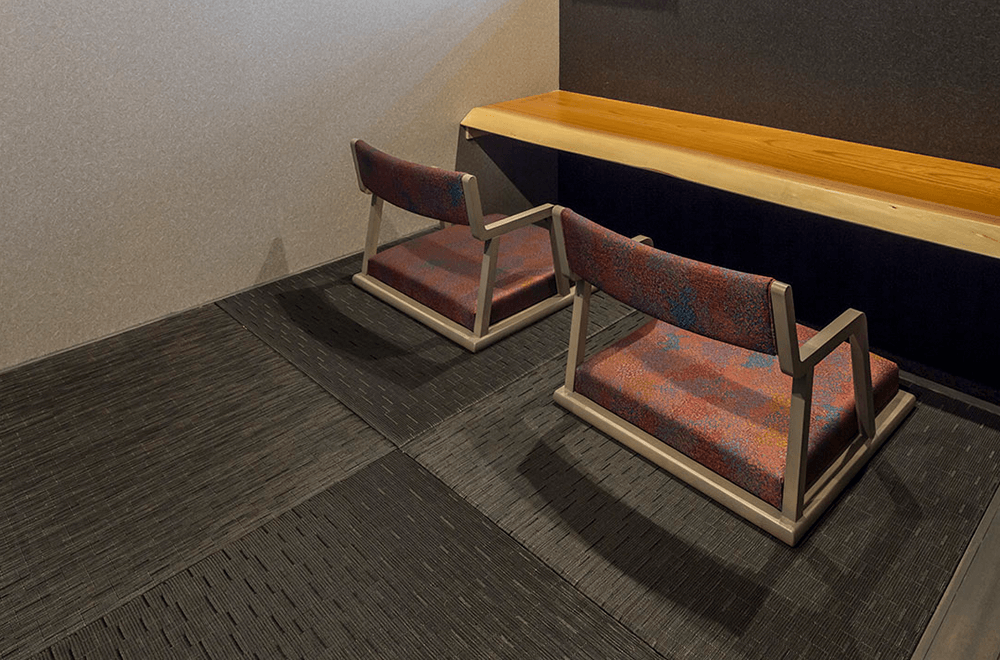 ポリエステルコアを塩化ビニールでコーティングしたその素材は、耐久性・撥水性に優れ、50のカラーを超えるバリエーションが従来の畳の概念を覆します。